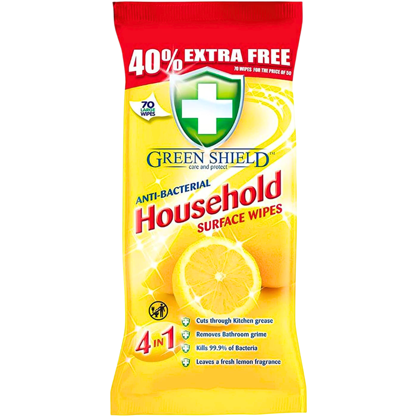 Антибактеріальні серветки Green Shield для побутових поверхонь 70 шт