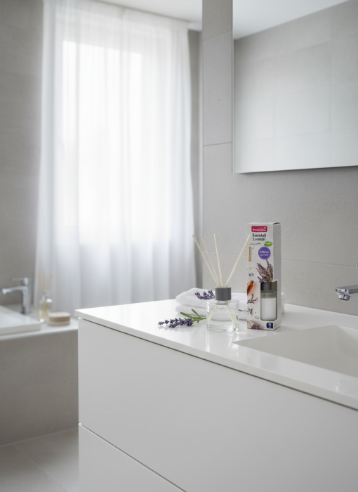 Засіб містить ароматичне масло з натуральним запахом лаванди, який поступово вивільняється у простір за допомогою спеціальних паличок. Ви можете регулювати інтенсивність аромату: чим більше паличок ви використовуєте, тим насиченішим буде запах.