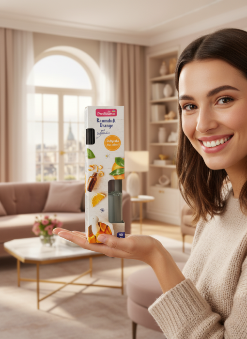 Profissimo Raumduft Orange — це аромадифузор, створений для наповнення вашого дому або офісу приємним, бадьорим ароматом цитрусів. Завдяки натуральним ротанговим паличкам, він рівномірно і делікатно поширює свіжий аромат апельсина, створюючи атмосферу затишку та гармонії.