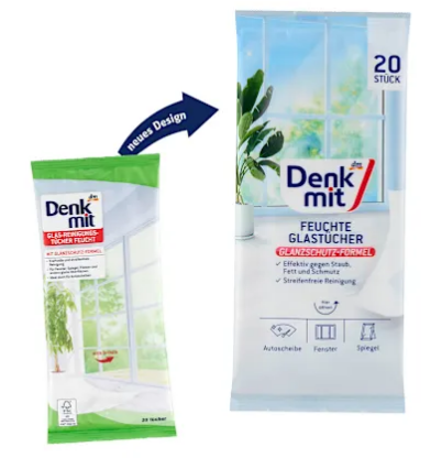 Влажные салфетки для чистки стекла от Denkmit быстро и легко очищают окна, зеркала, стеклянные столы, окна автомобилей и другие гладкие поверхности.