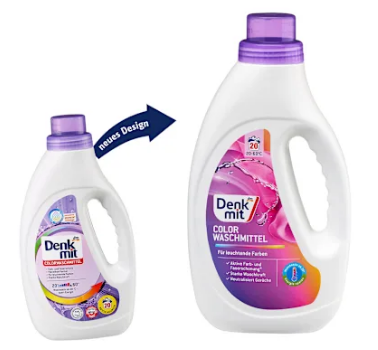 Denkmit Colorwaschmittel – это концентрированное жидкое средство для стирки, гарантирующее безупречную чистоту вашей одежды. Благодаря редкой форме он быстро растворяется и полностью вымывается, не оставляя белых пятен и разводов даже на темных тканях.