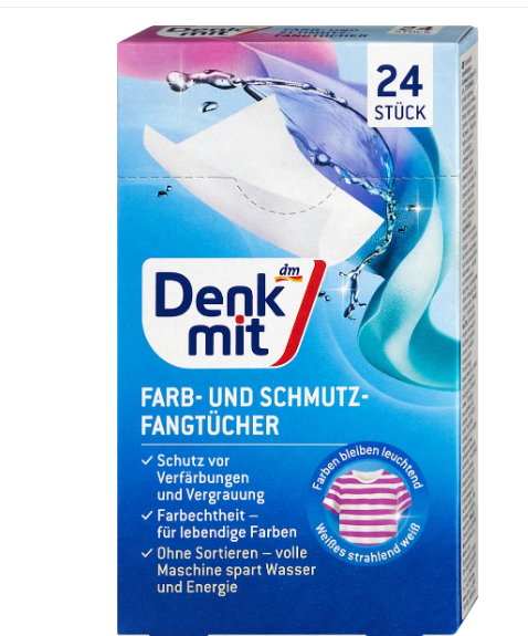 Абсорбуючі серветки Denkmit для прання кольорових виробів захист кольору 24 шт 4066447791938